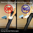 The palms are pink on the front and blue on the back. By swinging so that you can see the pink side up to impact, you can practice with an awareness of hand first.