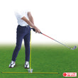 Adjust the angle of the alignment stick to waist height. Placing the alignment stick on your right hip and swinging so that it doesn't hit the stick will prevent sway during the backswing, while placing it on your left hip and swinging so that it doesn't hit the stick will help prevent sway during the follow-through.